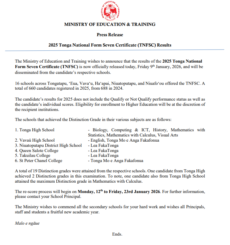 I call on every educator, leader, and partner in education—across both Government and Non-Government systems—to bring their whole heart to this shared responsibility. Let us continue strong, serve with purpose, and move forward together—grounded in our values and open to innovation—to strengthen education for every child, in every community, across our Kingdom.
