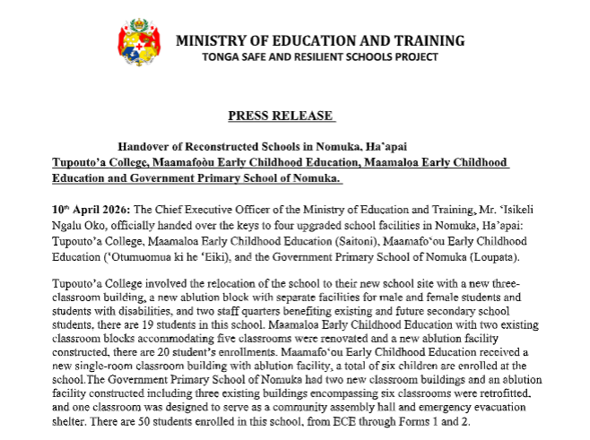 For us as Tongans, two pillars have always shaped who we are: Lotu mo e Ako — Faith and Education. The Ministry of Education and Training carries one of these sacred responsibilities, and with it comes a duty to light the pathway for our children and future generations. Our Tongan values must remain at the heart of everything we do. They are not optional—they are our compass. Our four core Tongan values—Faka‘apa‘apa (Respect), ‘Ofa (Love), Fatongia (Responsibility), and Fetokoni‘aki (Cooperation)—must be intentionally embedded into our education system, our curriculum, our teaching practices, and our everyday life skills.